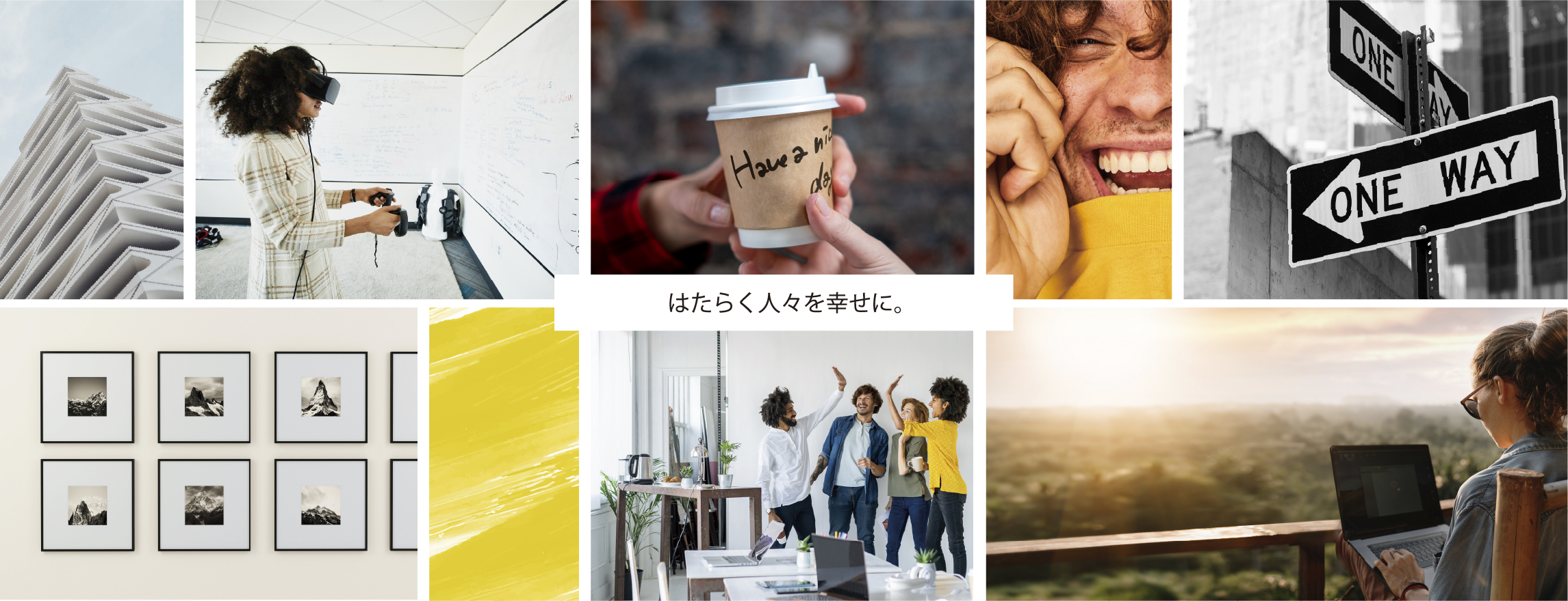 パーパス『はたらく人々を幸せに。』のもと、多彩な人材が集まり、あらゆる可能性に真剣に向き合う姿勢を示しています。 堂々とした印象で存在感があり、そして先進性を感じさせるカラー。