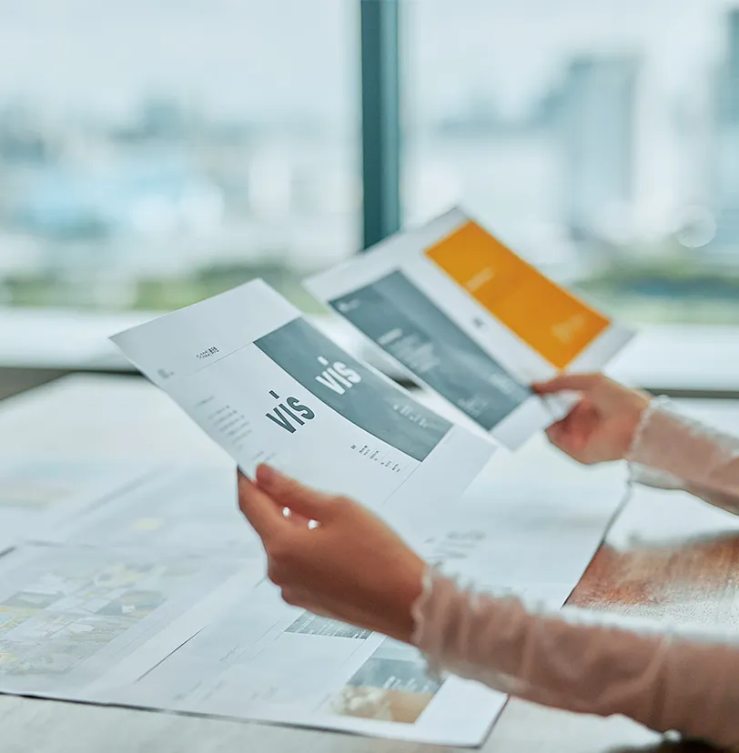 ブランディング事業は、ワークプレイスデザインのみならず、WEBサイト・パンフレット・名刺などのVI(ヴィジュアル・アイデンティティ)構築、CI(コーポレート・アイデンティティ)デザインを含めた企業ブランディングを支援する事業です。クライアントごとに異なる課題やご要望、ヴィスが培ってきた多彩なケーススタディやクリエイティブ実績を踏まえた最適なソリューションをご提案しています。